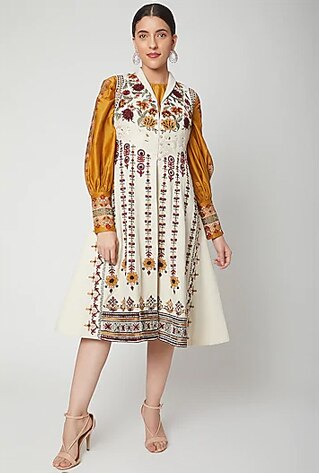 While experimenting with the indo-western statement every season is predictable for the designers now, this power-dresser is yielding new strength in the hands of Chandrima. This season, ace festive dressing but not as they know it. Swap your traditional kurta ensemble with this embroidered kalidar jacket and show ’em your skilful styling. Next, the embroidered waistcoat by the label spells millennial desi vibes instantly and is that little statement piece that you could also refurbish for a beachside soiree.
