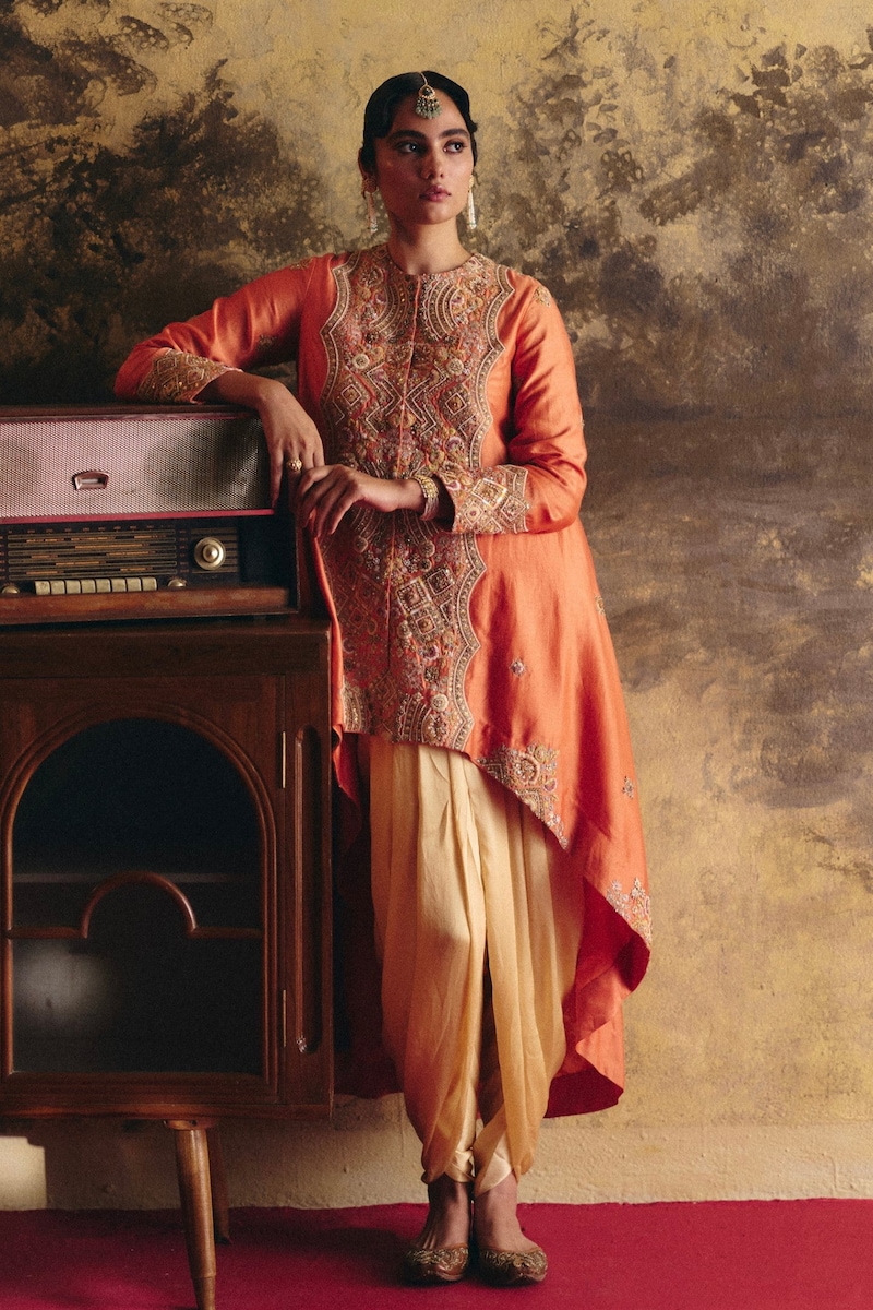 Searching for contemporary silhouettes with a festive edge? Petticoat Lane reimagines traditional attire with a modern, fusion sensibility. Think a fluid draped skirt styled with an embroidered waistcoat and an elegant cape – an ensemble that seamlessly marries celebratory charm and new-age edge.