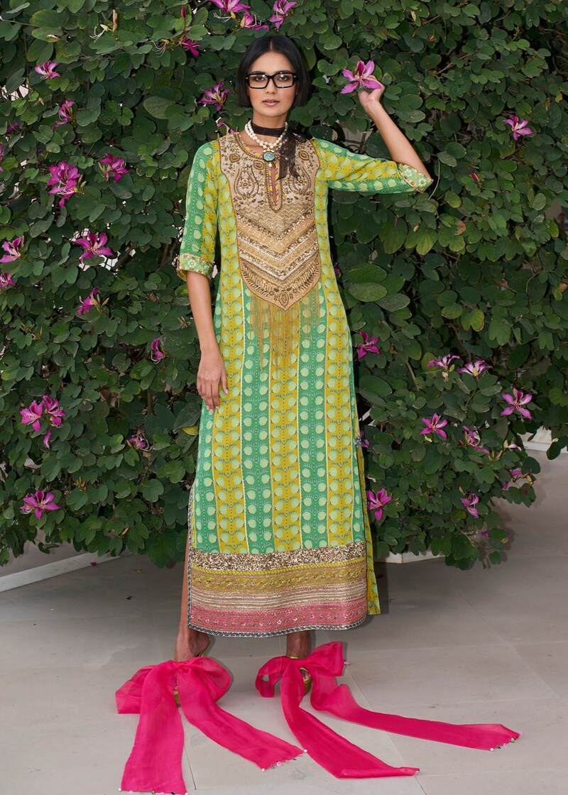 Step into the season in a vibrant pink hue with Vinita Bhansali’s exquisite blend of traditional craftsmanship and contemporary design. Whether you opt for a kaftan skirt set or an embroidered co-ord set from the label, each creation ensures a statement-making presence. Rooted in the rich artistic heritage of Rajasthan, the label reimagines festive wear with modern silhouettes that feel both timeless and innovative.